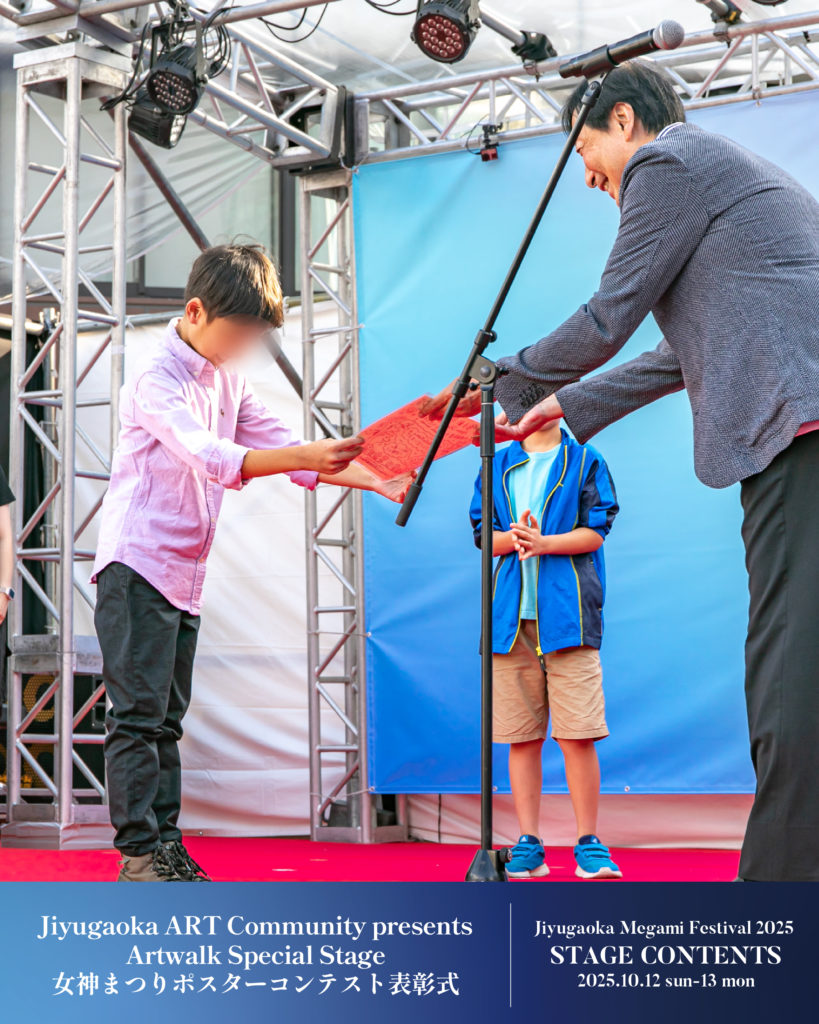 今年もポスターコンテストに、子どもたちが思い思いに描いた「自由が丘女神まつり」のポスターがたくさん寄せられました。その中から、選ばれた作品を描いてくださった子どもたちの表彰式を駅前特設ステージにて行います。入選作品は実際に街に展示されていますので、ぜひそちらもご注目ください。