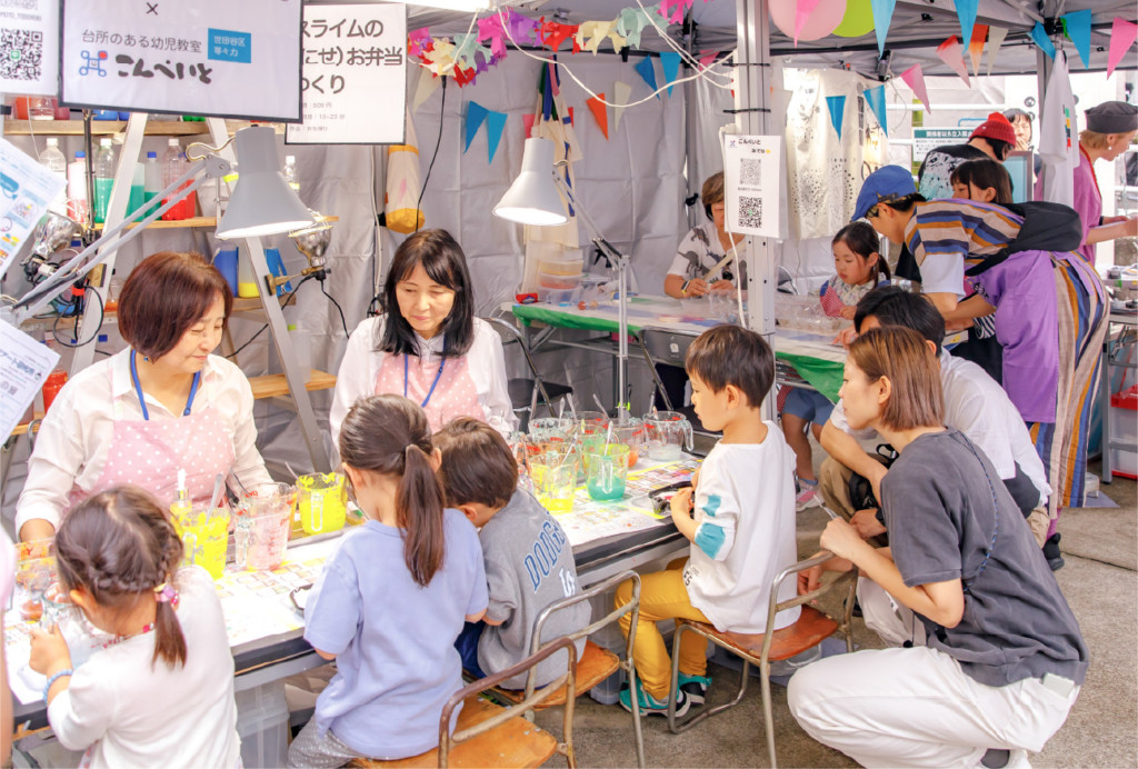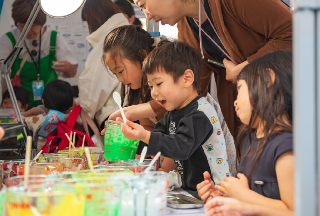 また、獣害駆除された鹿の骨に新たな命を吹き込むアクセサリー作りのNEWBONEや、アオトランジェによる土の温もりを感じる風鈴の組み立て体験といった素材と向き合うワークショップも登場。那須慶子による魔法の画材を使った絵画制作や、ふわふわキーチャーム作りASOMANABO、不思議なスライム造形、深沢アート研究所×こんぺいとなど、子どもたちの想像力を全開にする本物のアート体験も充実しています。