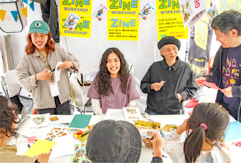 伊藤桂司と作るヴィンテージ素材のコラージュポストカード、Tetsu Takedaが手掛ける海の漂着物などを用いた立体バッチ作り、ヒロ杉山率いるクリエイティブユニット、エンライトメントがデザインするシルクプリントグッズの販売など、プロの感性に直接触れられるクリエイティブな体験が待っています。
